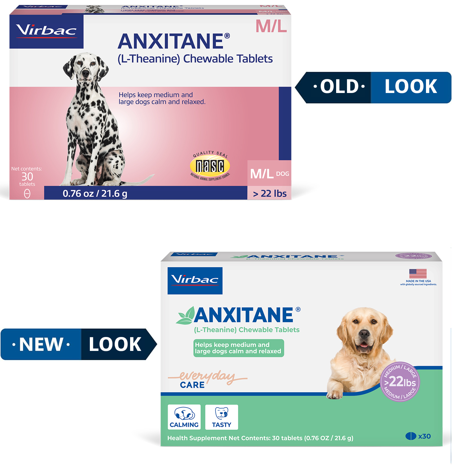 ANXITANE® (L-Theanine) Chewable Tablets help pets keep calm and relaxed. Containing a pure synthetic form of L-Theanine, an amino acid naturally found in green tea leaves, ANXITANE Tablets are a palatable option that both cats and dogs enjoy and a great option to use in conjunction with a behavior modification program.