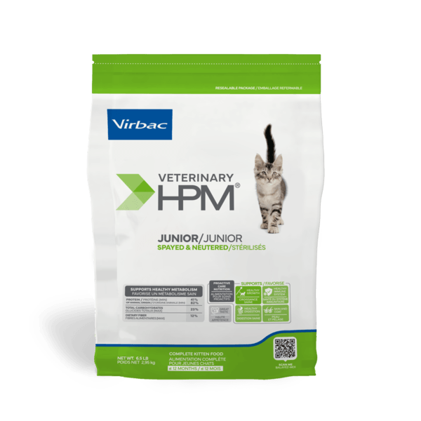 Nutritional Adequacy Statement VIRBAC VETERINARY HPM® SPAY & NEUTER JUNIOR CAT FOOD is formulated to meet the nutritional levels established by the AAFCO Cat Food Nutrient Profiles for Growth.